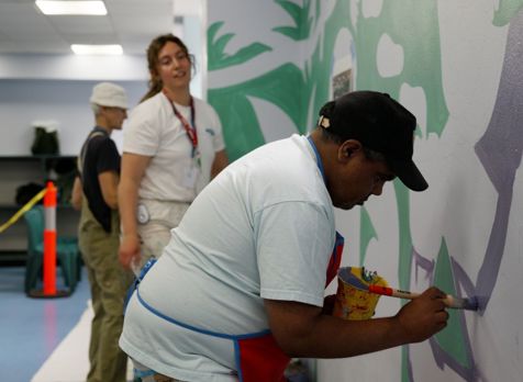 The Matthew Talbot Hostel Conference in Woolloomooloo teamed up with Vinnies Services in September to create a vibrant, warm welcome for the Hostel’s community in the form of a beautiful mural. Since the MTH Conference’s formation in 2022, its members have been dedicated to improving the experience of people accessing crisis accommodation in Woolloomooloo, as well as their journey beyond.